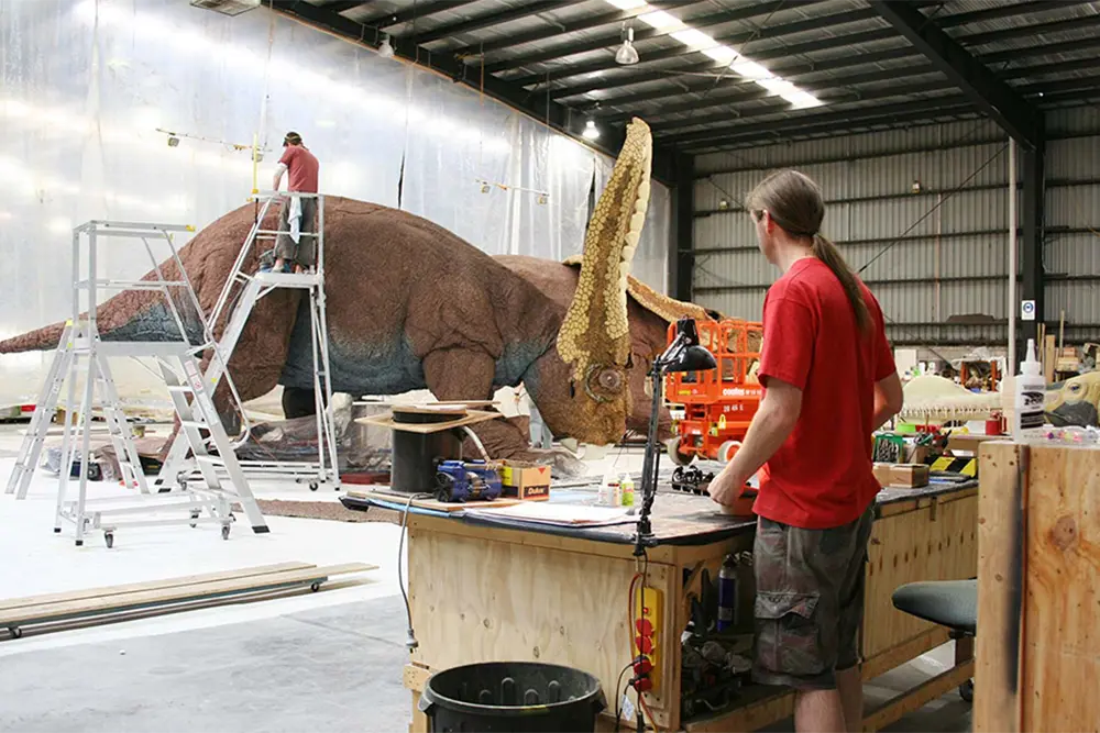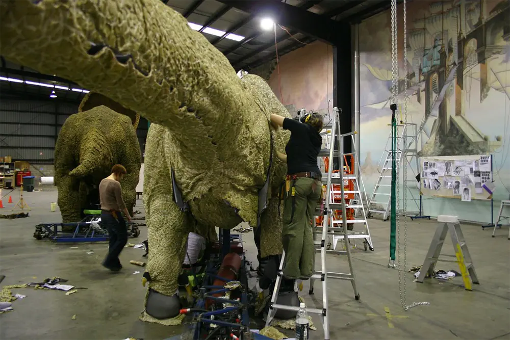 Walking With Dinosaurs was originally conceived as a one-off project, using a team of engineers, assembled by world renowned animatronic creature designer Sonny Tilders, to construct the dinosaurs. Following the show’s success and to fulfil its international potential, esteemed businessman, Gerry Ryan OAM, Carmen, and Sonny went into business together. At this stage the company had two divisions – one run by Carmen in Sydney to create and produce productions (which became Global Creatures, cofounded with Gerry Ryan) and the second run by Sonny in Melbourne that would design and build the creatures (which became the Creature Technology Company).